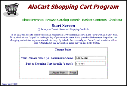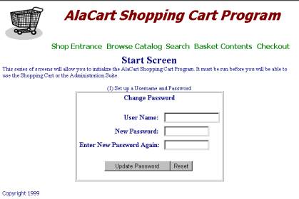 2. Near the bottom of the screen select the Setup AlaCart Configuration link. The AlaCart Shopping Cart Program displays at the Start Screen page. |