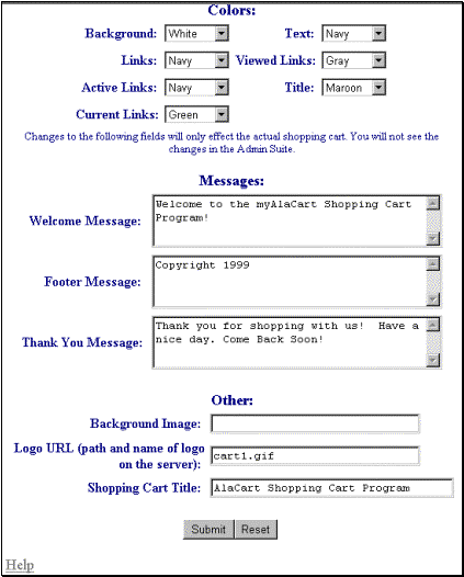 The “Look and Feel” Tool allows you to control colors, text and images that appear on your Shopping Cart.