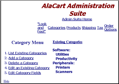 Single-click on the Help link (available from all of the pages within the Category Tool for more information on using different features).