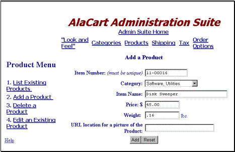 The Edit a Product Tool allows you to change information about an existing item already in your Shopping Cart.
